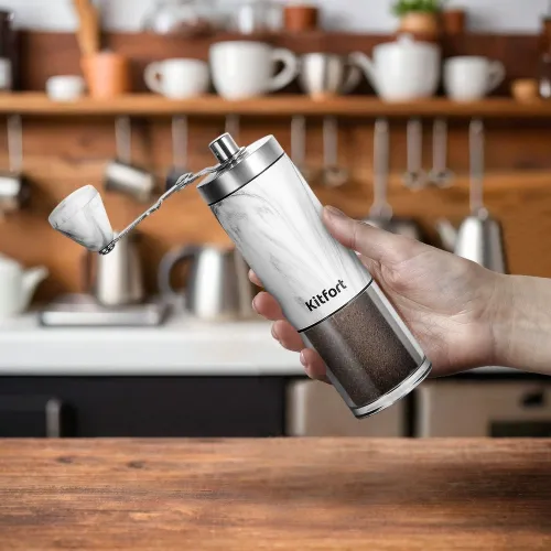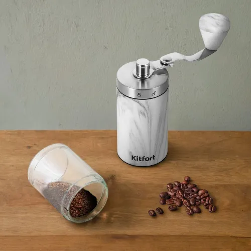 Кофемолка Kitfort КТ-7471 ручная сист.помол.:жернова вместим.:25гр серый/серебристый