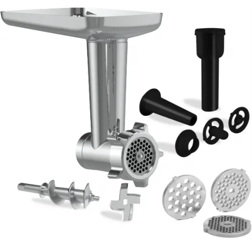 | Дополнительно в комплекте | 3 перфорированных диска, насадки для колбас и кеббе, толкатель, лоток |