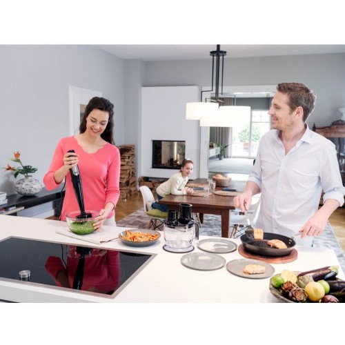 | Особенности | 11 насадок в комплекте: Насадка кухонный комбайн 1500 мл, Нож для измельчения, Терка крупная, Терка мелкая, Шинковка крупная, Нарезка соломкой, Насадка для картофеля-фри, Насадка для густого теста, Насадка-измельчитель 350 мл, Насадка-венчик для взбивания, Насадка для приготовления пюре |