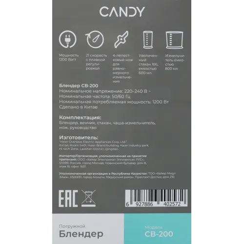 Блендер погружной Candy CB-200 1200Вт белый