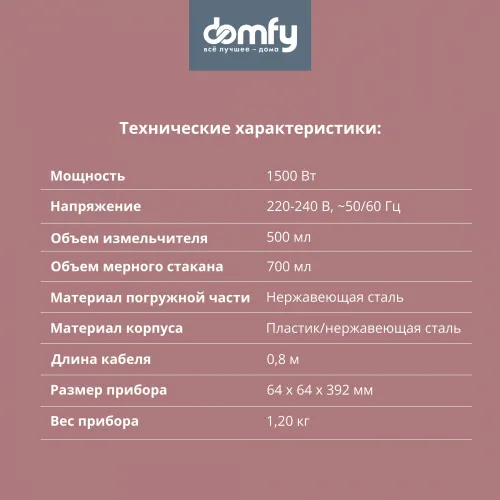 Блендер погружной Domfy DSM-HB401 1500Вт серебристый/черный
