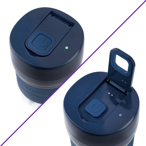 | Особенности | Портативный блендер работает от аккумулятора и легко заряжается от USB. В комплекте с ним идёт зарядный шнур. Он подсоединяется к магнитному разъёму, расположенному в верхней части блендера. |