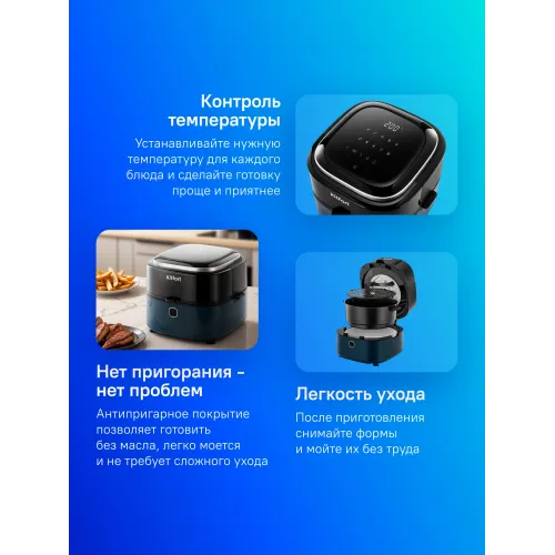 | Список режимов/программ приготовления | стейк; рыба; куриные крылья; пицца; выпечка; орехи; картофель фри; креветка; овощи; ребра |