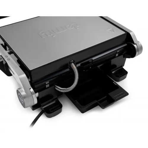 | Особенности | Верхняя крышка имеет «плавающий» фиксатор и адаптирует свое положение под любой продукт с максимальным касанием к панели нагрева. |