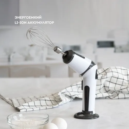 | Особенности | Энергоемкий Li-ion аккумулятор 2200 мА*ч. Время работы после полной зарядки 45-90 минут. Время зарядки до 4 часов. Индикатор зарядки аккумулятора. 3 положения корпуса. USB-кабель длиной 80 см. Насадка для смешивания. Насадка для взбивания крема. Книга рецептов в комплекте. |