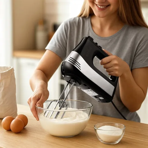 Описание | Оснащен двумя комплектами насадок венчики подходят для взбивания ингредиентов и замеса жидкого теста для блинов, вафель или бисквитов, а крюки для замеса более густого теста, например песочного или дрожжевого. Насадки легко снимаются с моторного блока, поэтому уход за устройством не составит труда. |