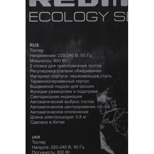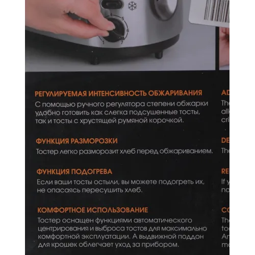 | Режимы | подогрев тостов, разморозка и обжаривание |