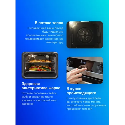 Режимы духовки | Быстрый нагрев духовки,Классический нагрев (снизу+сверху)+работа вентилятора,Большой гриль+работа вентилятора,AirFry: интенсивное запекание,Вентиляционный нагрев,Классический нагрев (снизу+сверху),Большой гриль,Пицца,FrozenBake: приготовление замороженных блюд,Размораживание,Очистка паром AquaClean |