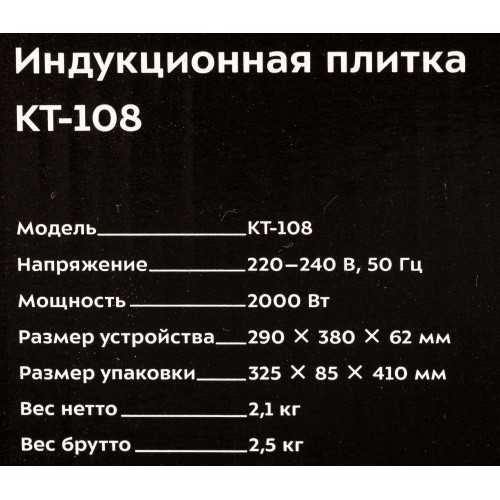 Плита Электрическая Kitfort КТ-108 черный стеклокерамика (настольная)