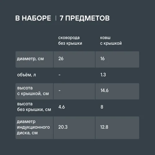 | Сковороды в наборе | сковорода б/кр 26 см |