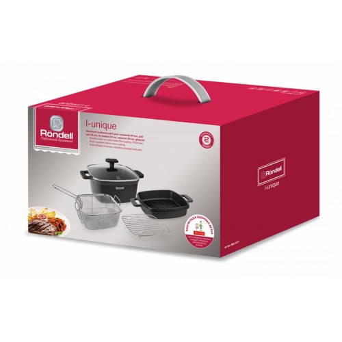 | Состав комплекта | Кастрюля с крышкой 24 см, (4,3 л) , сковорода-гриль 24x24х4,6 см, корзина для фритюра 20х20х8,5 см, решетка для запекания мяса 20 см |