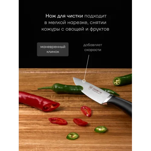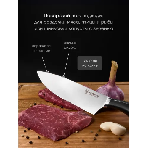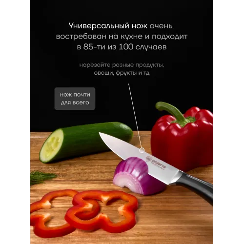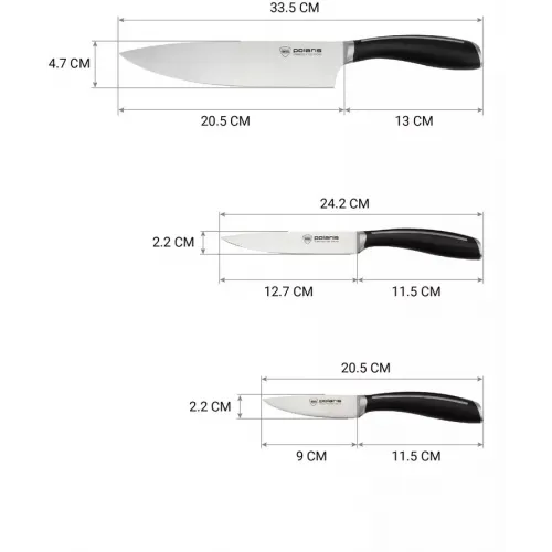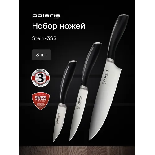 Описание | Набор ножей Polaris Stein -3SS – это выбор для истинного повара и любителя кулинарии. В нем вы найдете все необходимые ножи для различных задач на кухне. Благодаря наличию всех этих ножей, вы сможете легко и быстро приготовить любое блюдо. |