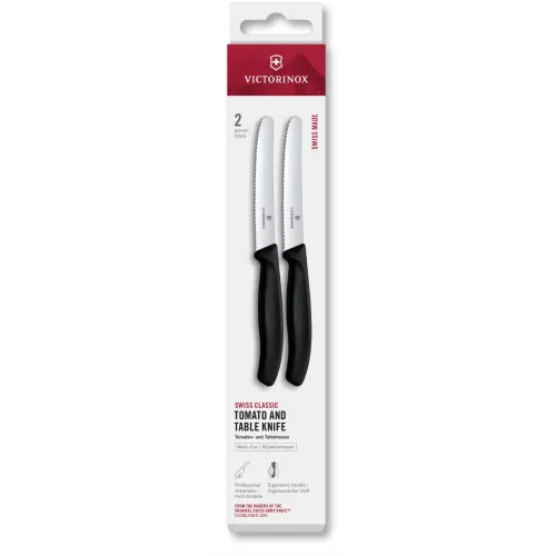 | Состав комплекта | В комплекте 2 ножа серрейторной заточки, с закругленным кончиком и длиной лезвия 11см |