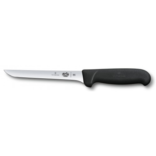 Нож кухонный Victorinox Fibrox (5.6303.15) стальной обвалочный для мяса лезв.150мм прямая заточка черный