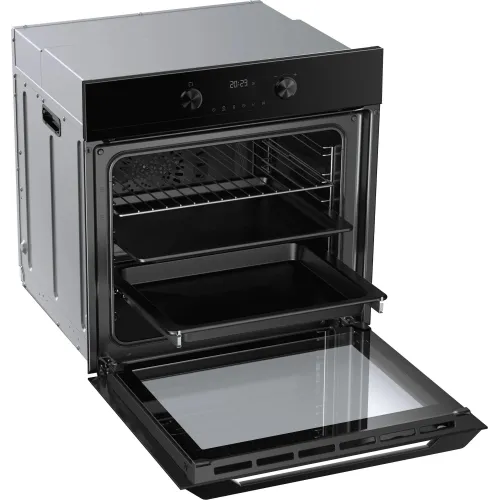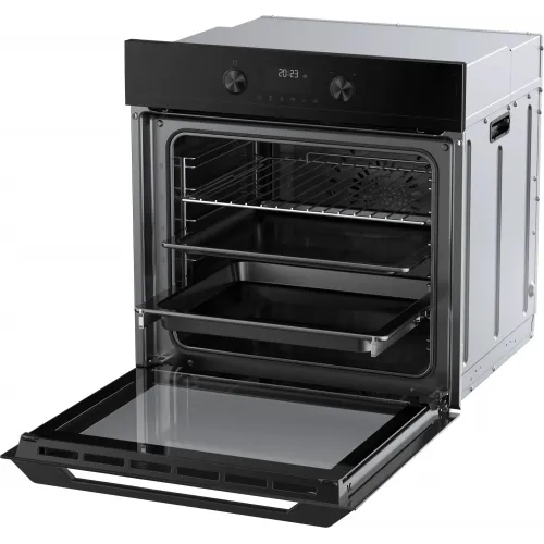 | Особенности конструкции | вентилятор охлаждения, дисплей, полностью стеклянная внутренняя поверхность дверцы духовки, телескопические направляющие, утапливаемые переключатели, электронный программатор |