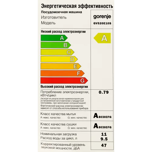 Посудомоечная машина встраив. Gorenje GV520E10S 1930Вт узкая