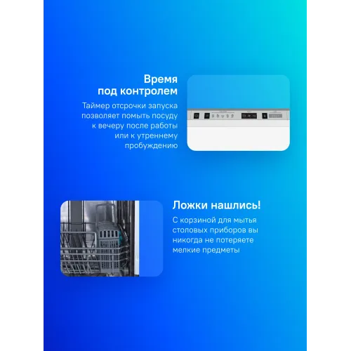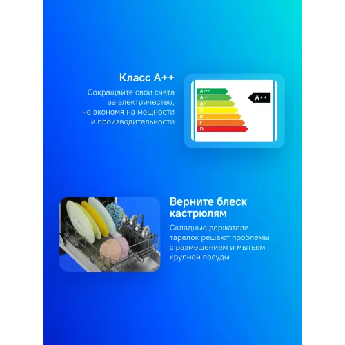 | Внутренняя конструкция | корзина для столовых приборов, разбрызгиватель над верхней корзиной, регулируемая по высоте корзина для посуды, складные держатели тарелок |