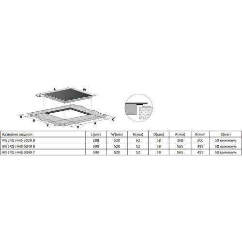 | Размеры для встраивания | 268x58x500мм |