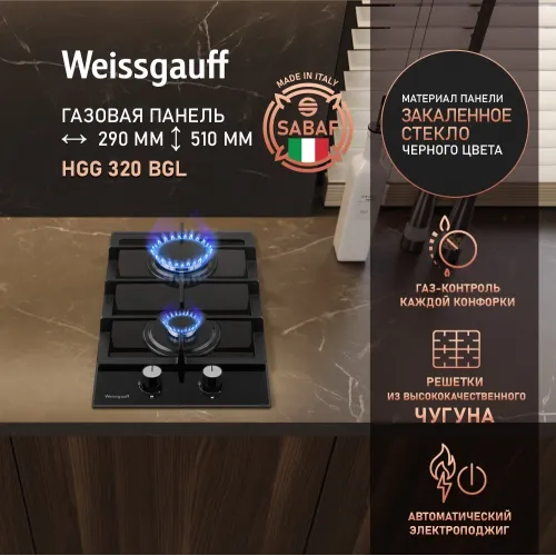 Газовая варочная поверхность Weissgauff HGG 320 BGL черный