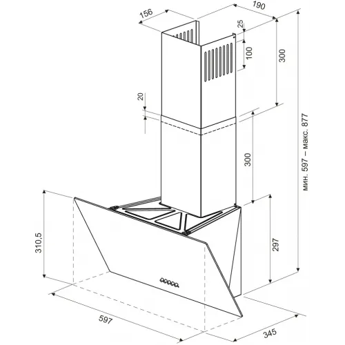 | Высота вытяжки (мин/макс) | 59.7x87.7см |