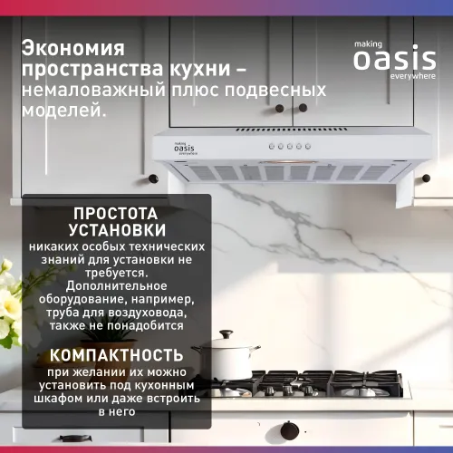 Вытяжка козырьковая Oasis PO-60W белый управление: кнопочное (1 мотор)