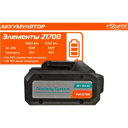 Батарея аккумуляторная Sturm! SBP1808HP 18В 8Ач Li-Ion