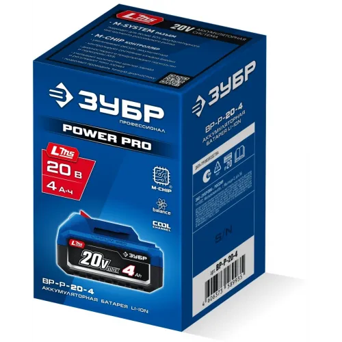 Батарея аккумуляторная Зубр Power PRO 20В 4Ач Li-Ion (BP-P-20-4)
