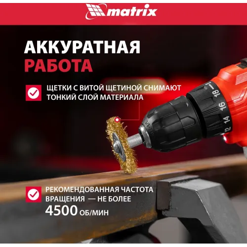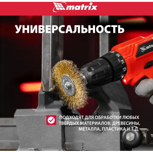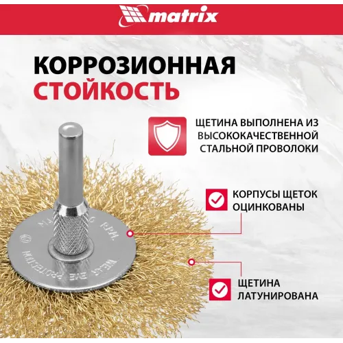 | Описание | Набор щеток MATRIX 74494 предназначен для использования совместно с дрелью. Применяется для шлифовки, полирования, зачистки от лака, краски и коррозии различных поверхностей и изделий. Рабочая часть щеток состоит из волнистой стальной проволоки с латунным покрытием. |