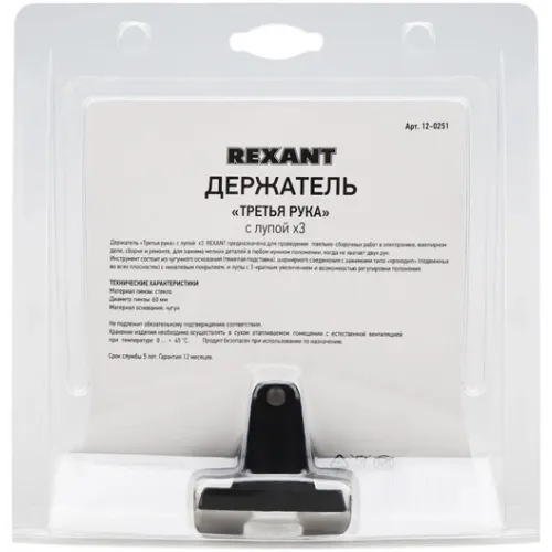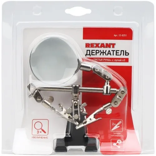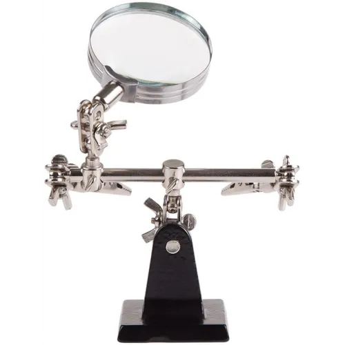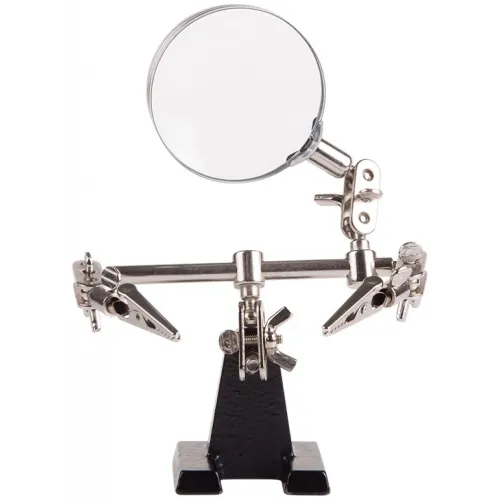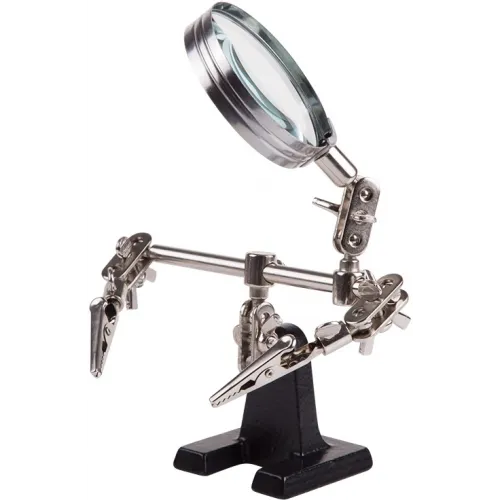 Описание | Третья рука идеальный помощник, при работе с мелкими деталями,когда не хватает двух рук. Модель с 3-кратным увеличением (возможность регулировки положения, диаметр линзы 60 мм). С помощью лупы можно будет рассмотреть даже самые мелкие детали. |