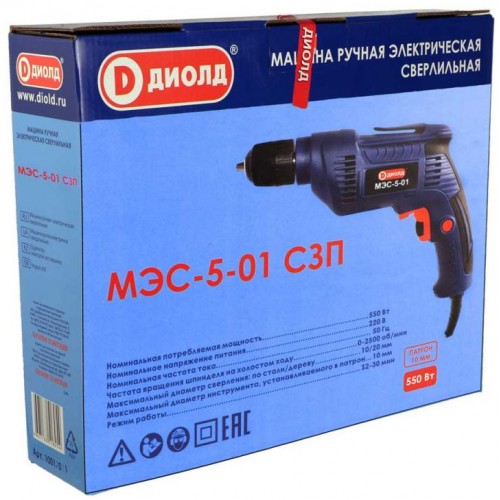 Дрель безударная Диолд МЭС-5-01 с СЗП 550Вт патрон:быстрозажимной реверс (10011021)