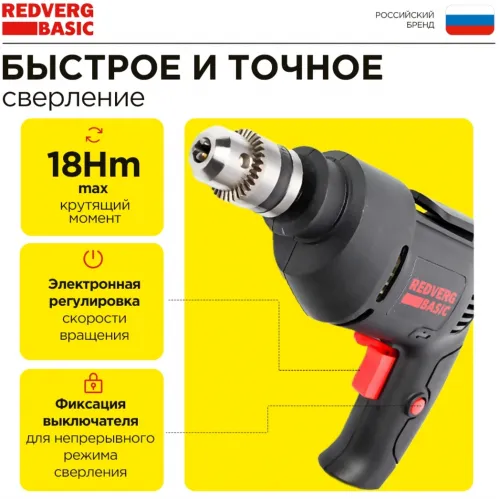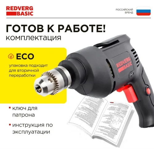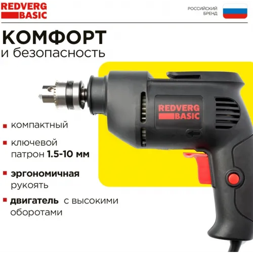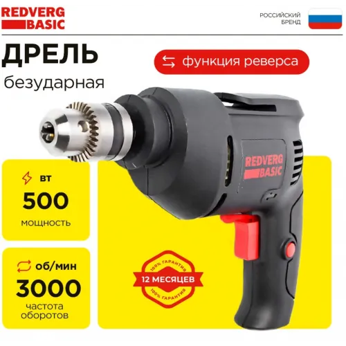 Дрель безударная RedVerg D500 Basic 500Вт ключевой реверс (D500)