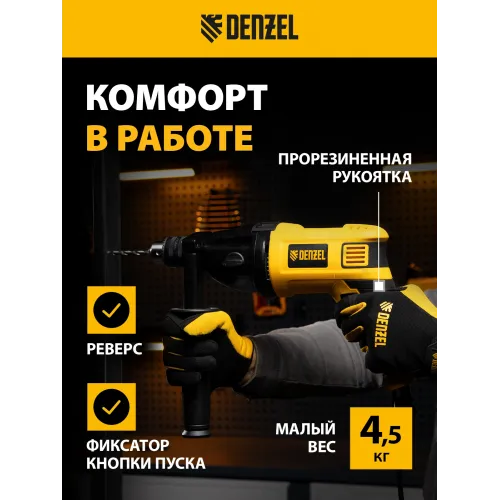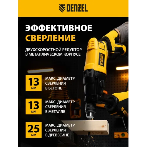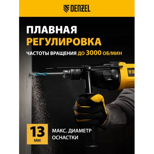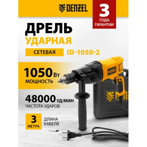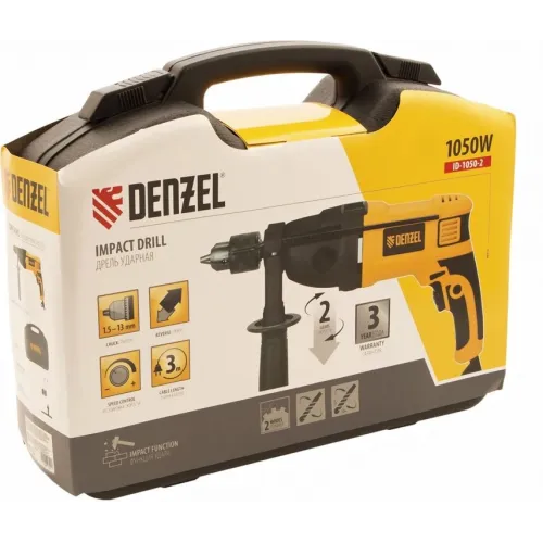 Дрель ударная Denzel ID-1050-2 1050Вт ключевой реверс (кейс в комплекте) (26312)