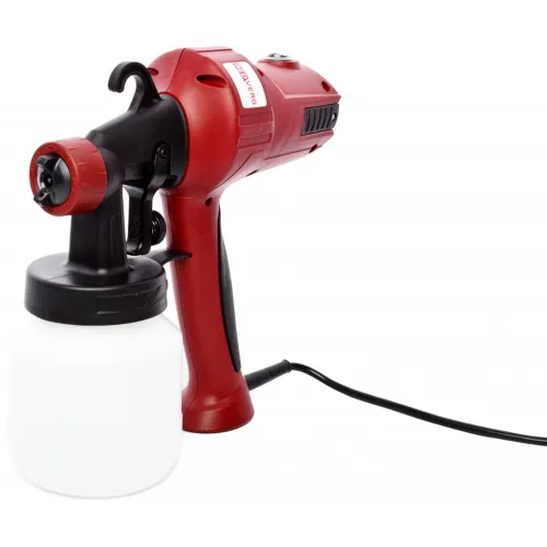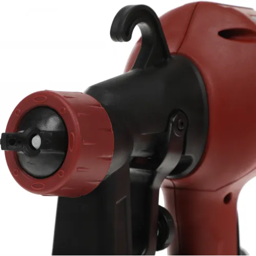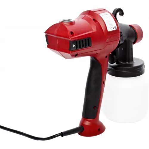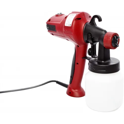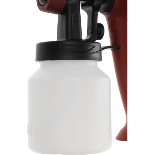 | Особенности | Оптимальная форма раструба для равномерного распыления краски на поверхность, бак распылителя вмещает 800 мл краски, регулировка объема краски, подаваемой на сопло, защита от разбрызгивания. |
