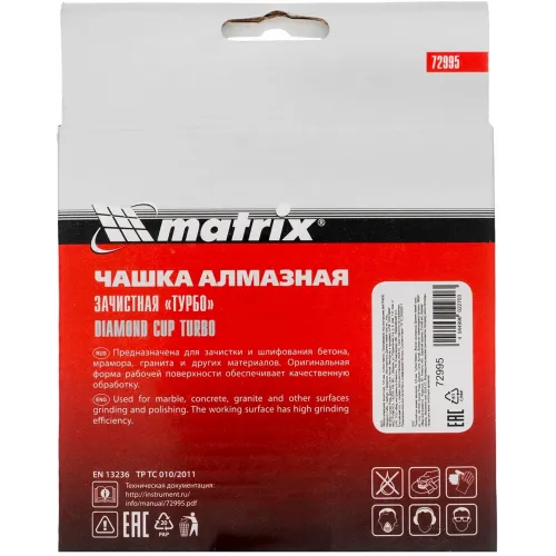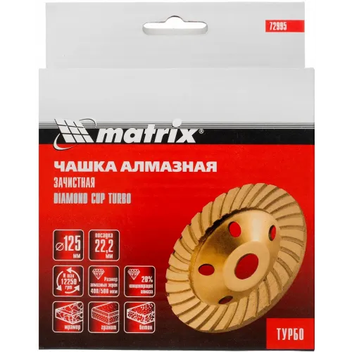 Чашка Matrix 72995 d=125мм d(посад.)=22.2мм (угловые шлифмашины) (упак.:1шт)