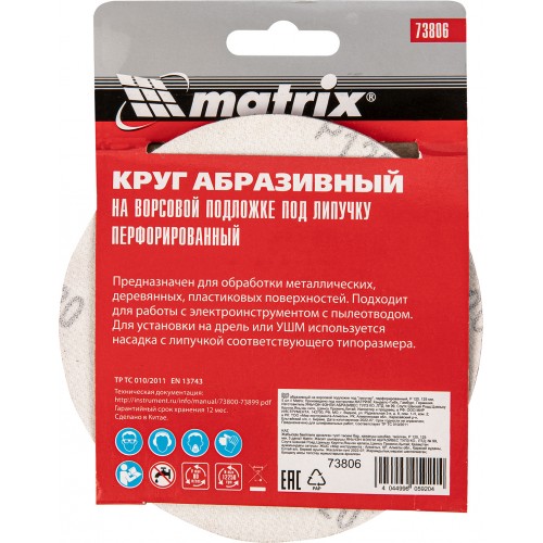 Диск абразивный Matrix 73806 d=125мм (шлифовальные машины/дрели) (упак.:5шт)