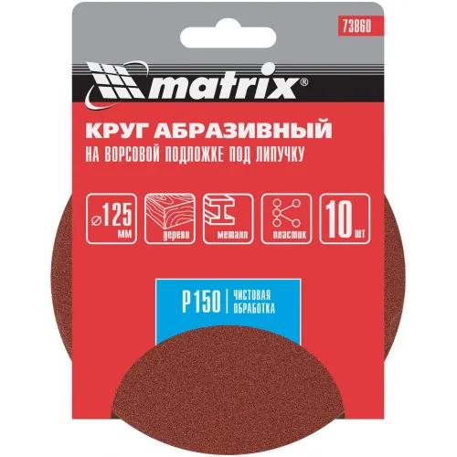 Диск абразивный по алюм./дер./плас. Matrix 73860 d=125мм (эксцентриковые шлифмашины) (упак.:10шт)