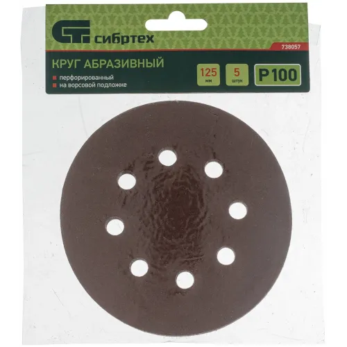 Диск абразивный по алюм./дер./плас. Сибртех 738057 d=125мм (эксцентриковые шлифмашины) (упак.:5шт)