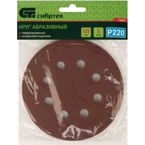 Диск абразивный Сибртех 738097 d=125мм (эксцентриковые шлифмашины) (упак.:5шт)
