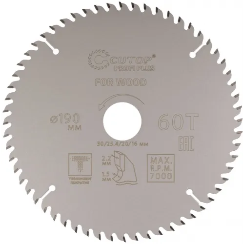 Диск пильный по дер. Cutop 75-19060Т d=190мм d(посад.)=30мм (циркулярные пилы)