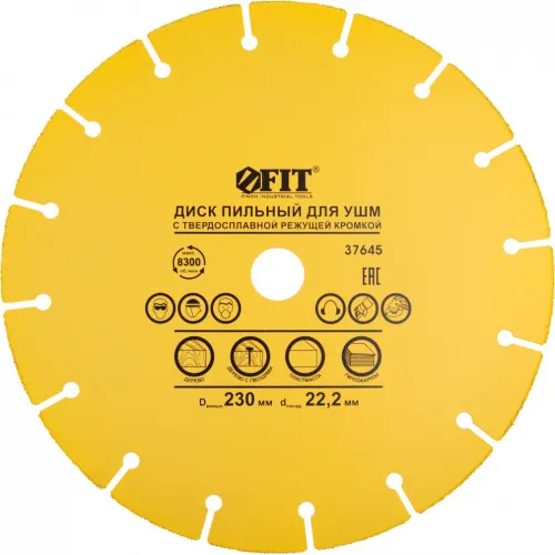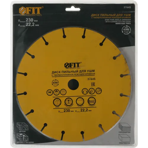 Диск пильный по дер. FIT 37645 d=230мм d(посад.)=22.2мм (угловые шлифмашины) (упак.:1шт)