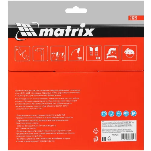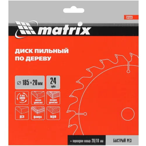 Диск пильный по дер. Matrix 73223 d=185мм d(посад.)=20мм (циркулярные пилы) (упак.:1шт)