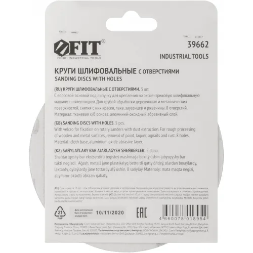 Круг шлиф. по дер./мет./пласт. FIT 39662 d=125мм (шлифовальные машины) (упак.:5шт)
