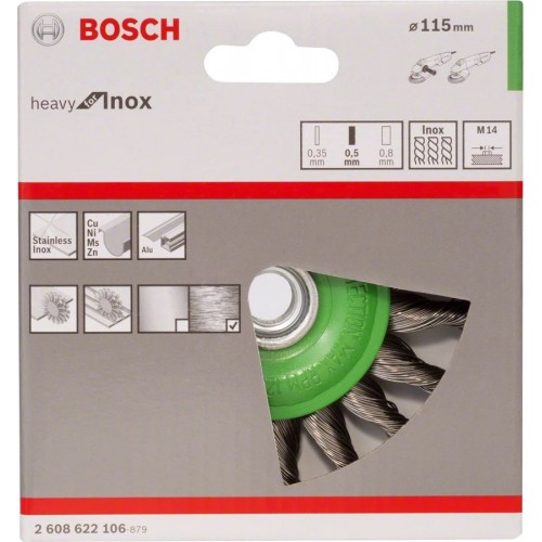 Щетка дисковая по мет. Bosch 2608622106 d=115мм d(посад.)=14мм (шлифовальные машины) (упак.:1шт)