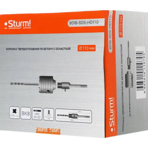 Коронка Sturm! 9018-SDS-HD110 по бетону Д=110мм Дл=180мм (1пред.) для шуруповертов/дрелей
