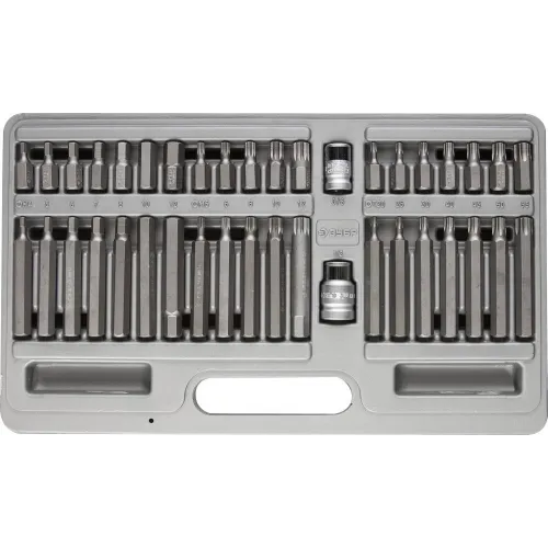 | Описание | Биты изготовлены из хромомолибденовой стали S2 методом ковки, что обеспечивает высокую надежность. При необходимости допускается использование с пневматическим ударным инструментом, однако при этом срок службы бит значительно снижается. Набор бит Spline. |