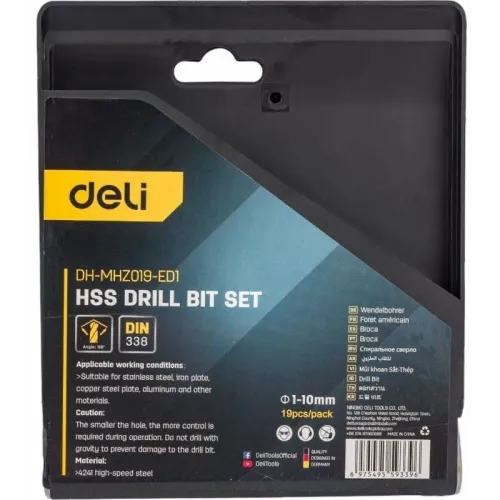 Набор сверл Deli DH-MHZ019-ED1 по металлу (19пред.) для шуруповертов/дрелей