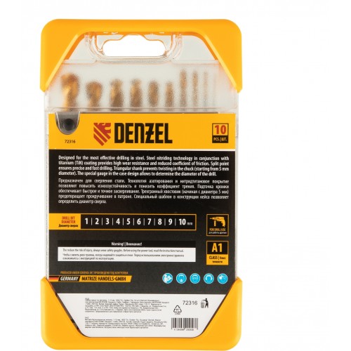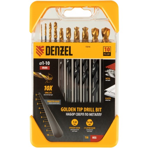 Набор сверл Denzel 72316 по металлу (10пред.) для дрелей