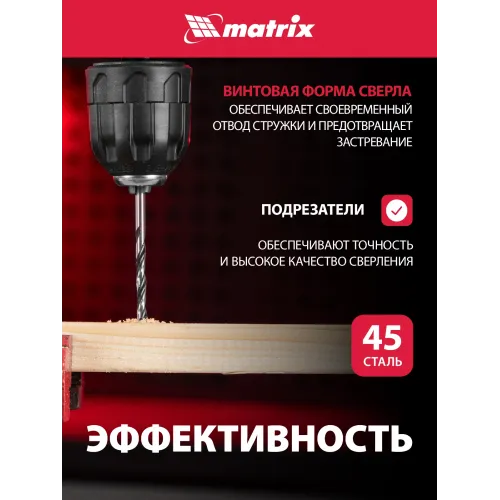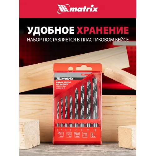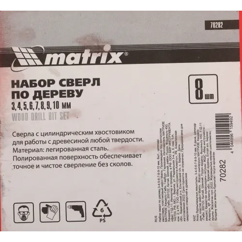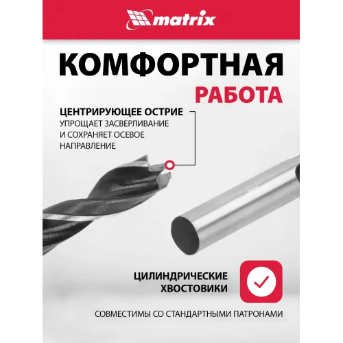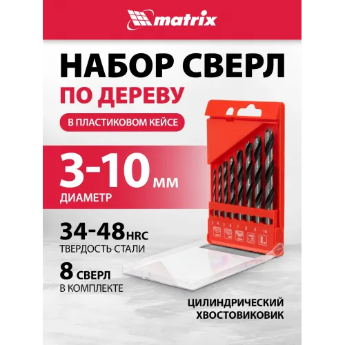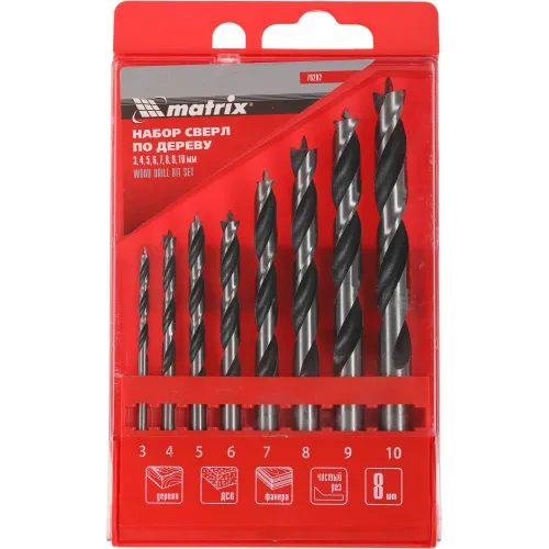 Набор сверл Matrix 70282 по дереву (8пред.) для дрелей