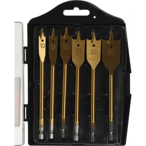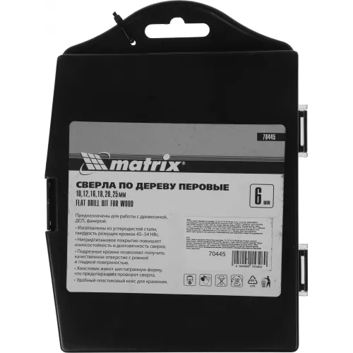 | Состав набора | Набор сверл перовых по дереву (6 шт; 10-12-16-18-20-25 мм.) MATRIX 70445 |