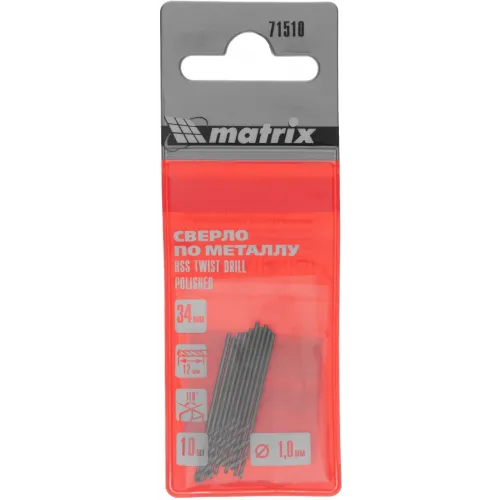 Сверло Matrix 71510 по металлу Д=1мм Дл=34мм (10пред.) для дрелей